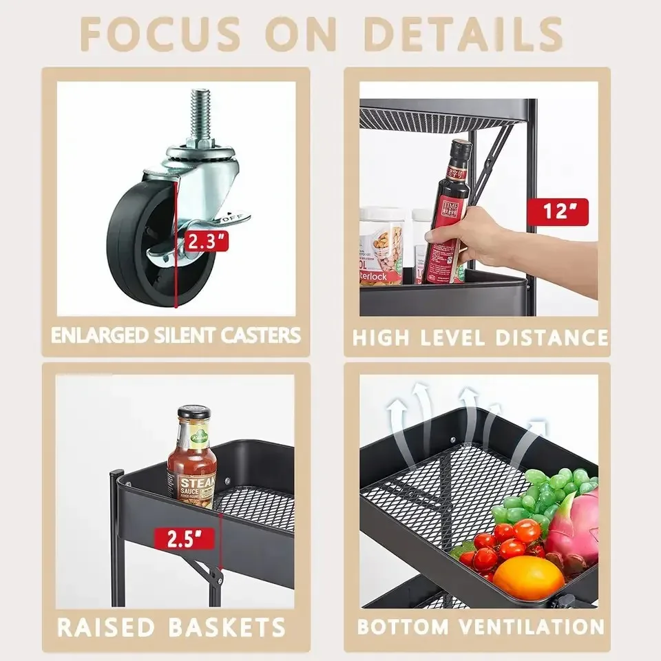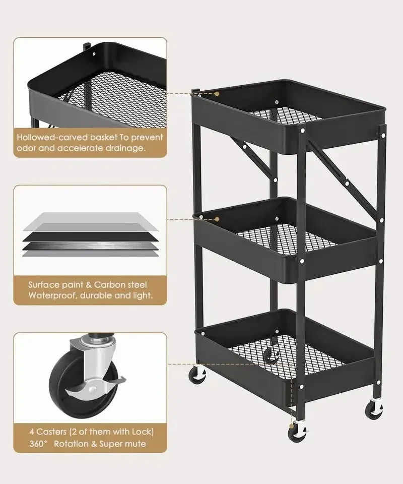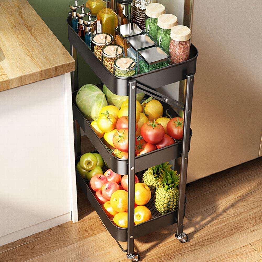 Keep your fruits, vegetables, and kitchen essentials neatly organized with this sleek rolling cart—perfect for small kitchens!