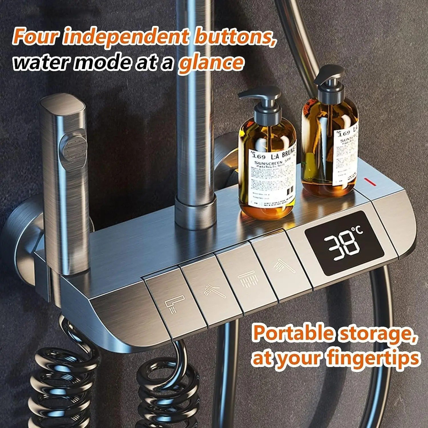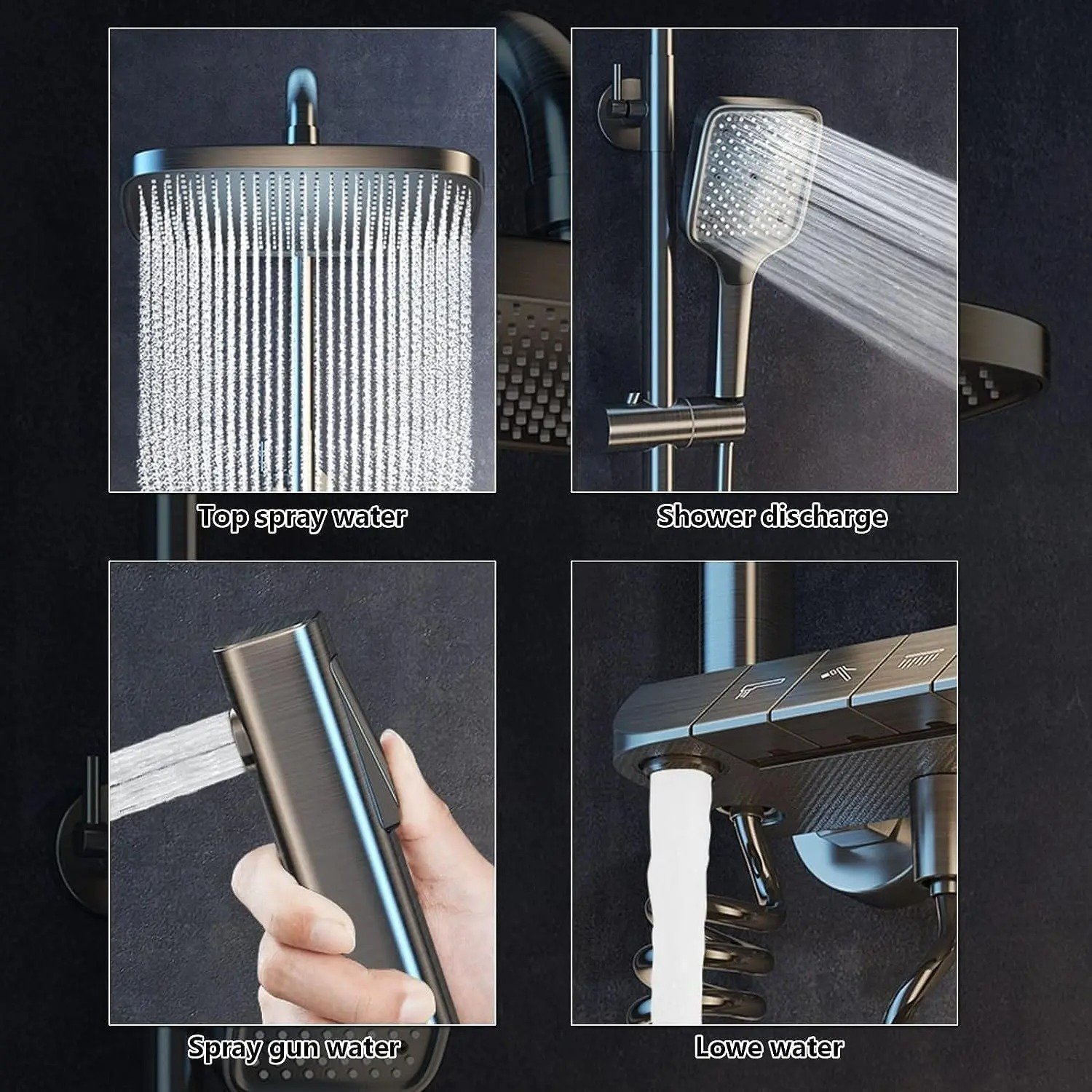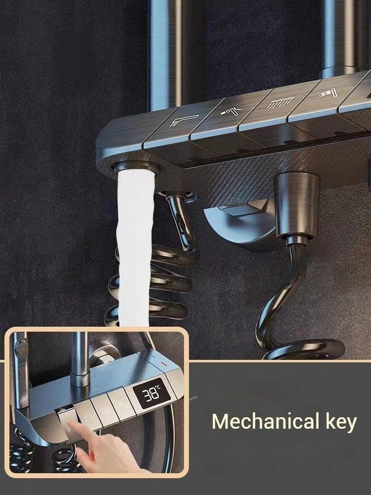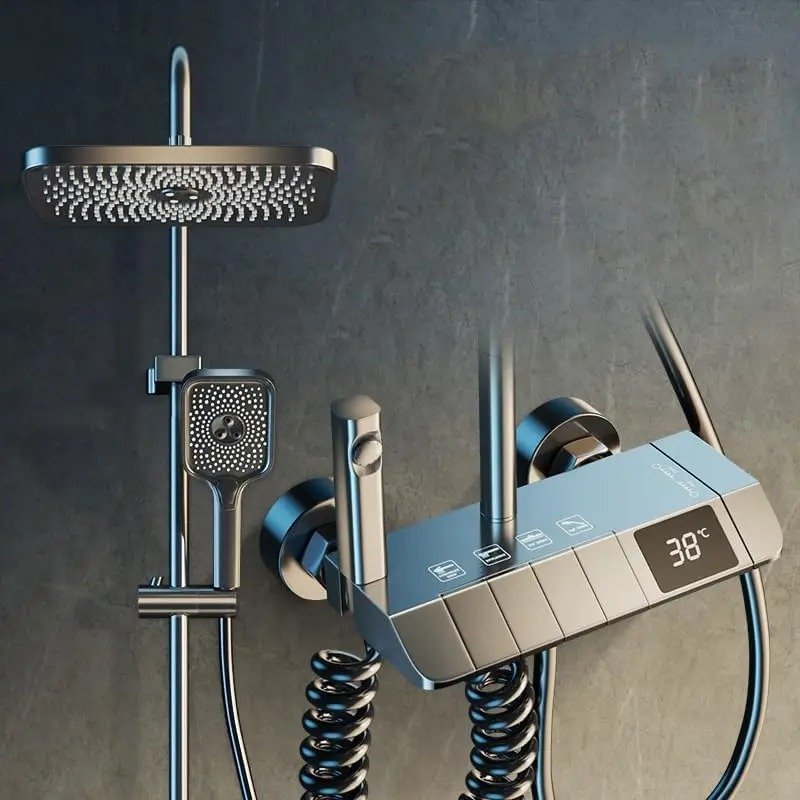 Upgrade your bathroom with this Luxury Piano Key Gun Gray Shower System. Its sleek, piano-inspired design adds a touch of elegance and sophistication, making every shower a stylish experience.