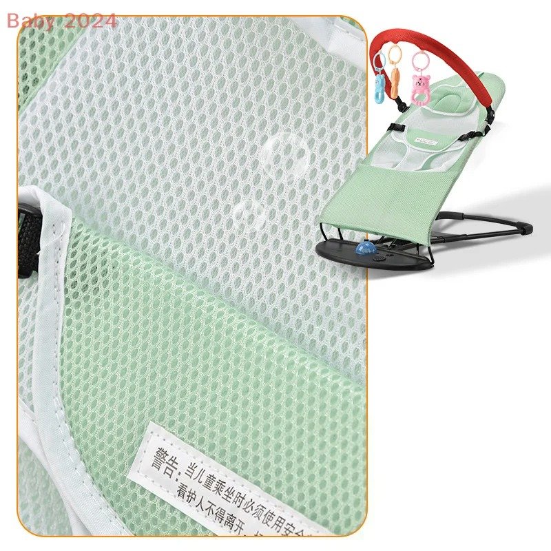 Kiti hiki cha kutikisa kina vifaa vya michezo yenye kuvutia, ambavyo vinamfanya mtoto abaki na furaha wakati wote.