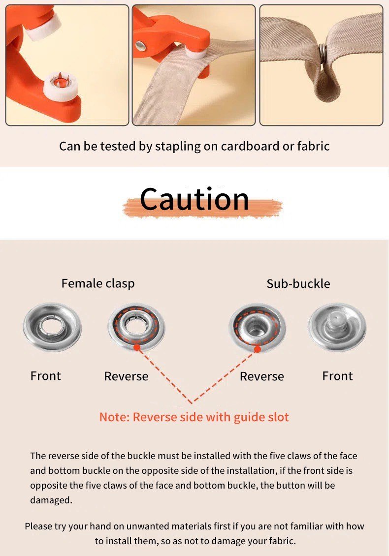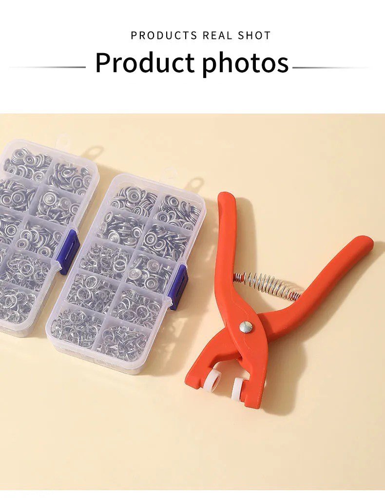 Ukarabati wa Nguo: Ikiwa una nguo zilizoharibika au unataka kubadilisha muonekano wao, seti hii ya kifaa cha pinces na vifungo vya chuma ni suluhisho lako. Unaweza kufanya marekebisho madogo au hata kutengeneza tena nguo zako kwa kutumia vifaa hivi vyenye ubora wa hali ya juu.